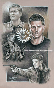 This drawing features portraits of Jensen Ackles and Jared Padalecki as Dean and Sam Winchester from the TV series Supernatural