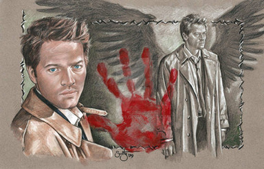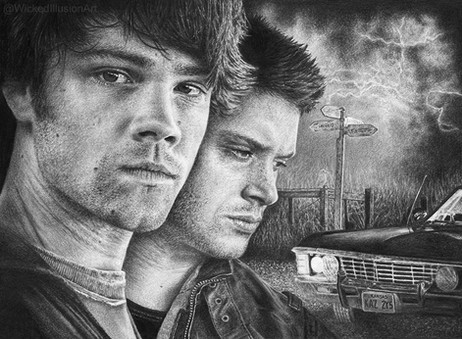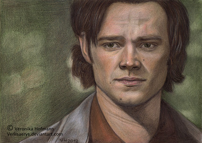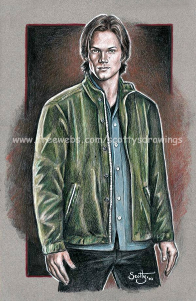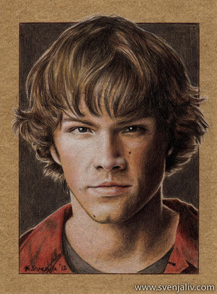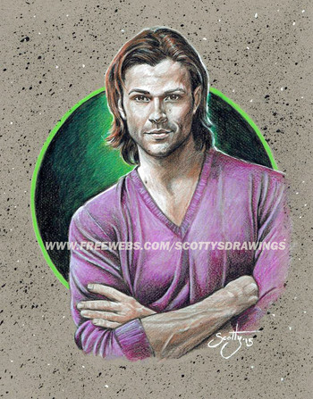 This drawing features portraits of Jared Padalecki as Sam Winchester as seen in season 3 of the WB TV series "Supernatural"