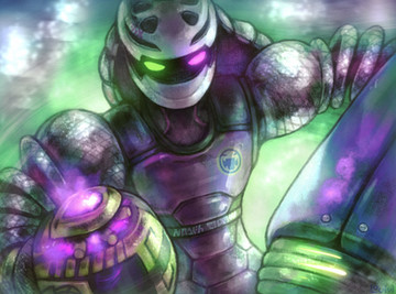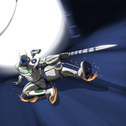 I drew up my own version of his regular uniform, then squinted at the approximately two screenshots of the jetpack outfit and tried to figure out and add what was different, then added my own touches ('cause really, who could tell anyway? XD)! And textures and glows and such, because those are cool.