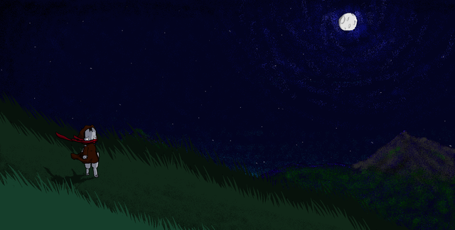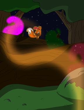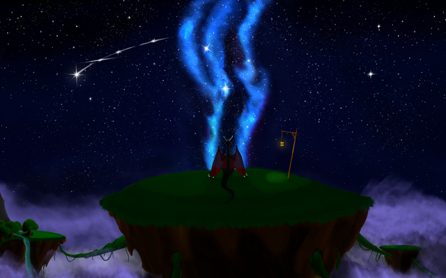 “Looking into the darkness off the cliff, you see glowing lights floating up in a spiral into the sky.”