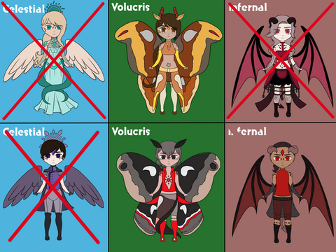 Every Fiendsect has primary features, such as: Wings, Insect Abdomen Tail, Horns, Pointed Ears, Slitted Eyes, Barbed Body, Clawed Hands and Feet.