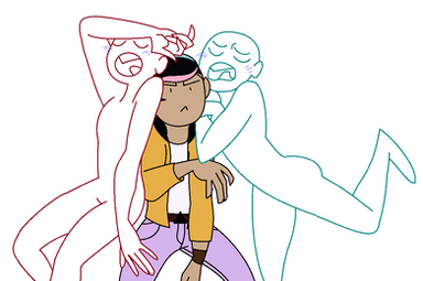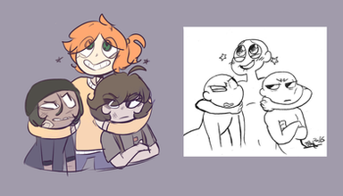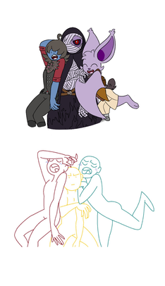 For a warm up this morning I decided to do one of these OC pose memes (Original poses by snuffysbox, find more here! snuffysbox.tumblr.com/tagged/d⦠)This is VERY in character doodle of my OC Apollo (angry man) and his girlfriend (Belongs to Zyngruff ) holding him back from his rude sister (My OC Andromeda)