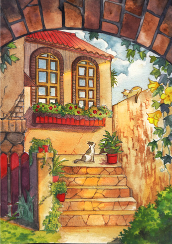 Many years ago I spent a winter on a Greek island. Oil pastel on paper.Related content