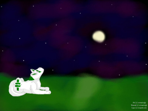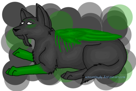 This is Vert (green in french). She is my new fursona. For starts, if you think her ears are werid, well, they are. They are cow ears. Her earings are...complicated. Well, on her left ear, she has 2 bar earings to make an X. On the other ear is a belly-button ring looking earing. Her eyes are blue because mine are and her pelt color is basically similar to my hair. Her tail is dipped (badly on purpose) a strange shade of green. Her fore-arms are self explanitory. That thing around her next is like a collar. By the way, her nose is the same color as her ears.I really love the tail accually. The color, the shading, everything about it. I also love the background. This picture was supposed to be crappy, but it came out fairly well!