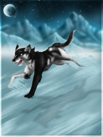 This is a stunning piece of artwork, it really is. The shading is wonderful, which makes the snow,wolf,and beautiful sky look very realistic. So great job on everything! It looks great