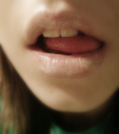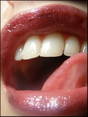 The clever lighting and focus create the impression that your adorable and lovely tongue is touching something in movement (some water, for instance); the illusion is quite effective indeed!