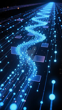 #abstract #blue #cosmic #cyber #dataflow #digitalart #energy #flow #futuristic #glowing #lighttrail #modern #motion #neon #network #particles #purple #scifi #space #technology