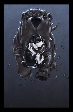 There's so much action in this picture! I really like how you did the dog's teeth and eyes.