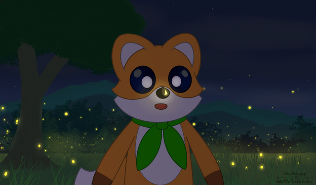 The image has a story that I never told anyone about, Max is upset and goes for a walk. He sees this river and a stick and taps the stick in the water where it makes ripples. I stopped drawing that part, but he also looks at the water and he sees his reflection. In 2022 I didn't know how to make that, but now I do. Max can glow in the dark if he can't see, that's what he's doing too