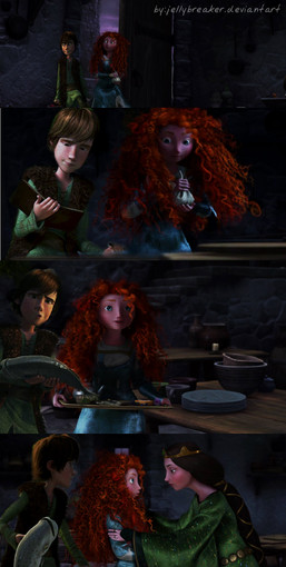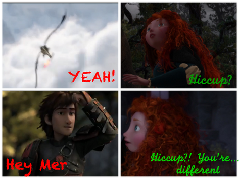 Ok, so I had to make Astrid a bad guy. I know, I'm ashamed. Allow me to please find a rock to hide under while you all come at me with pitchforks and torches. And, spoiler alert!! Hiccup will find Merida and they will make up!Dialogue:
