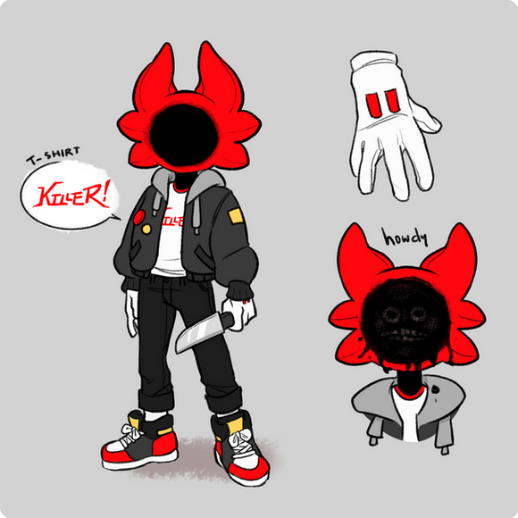 #digitalart #originalcharacter #characterdesign #monster #referencesheet #demon #baseballbat #blood #creature #goat #imp #mask #smileys #stickers #turnaround #glaggles