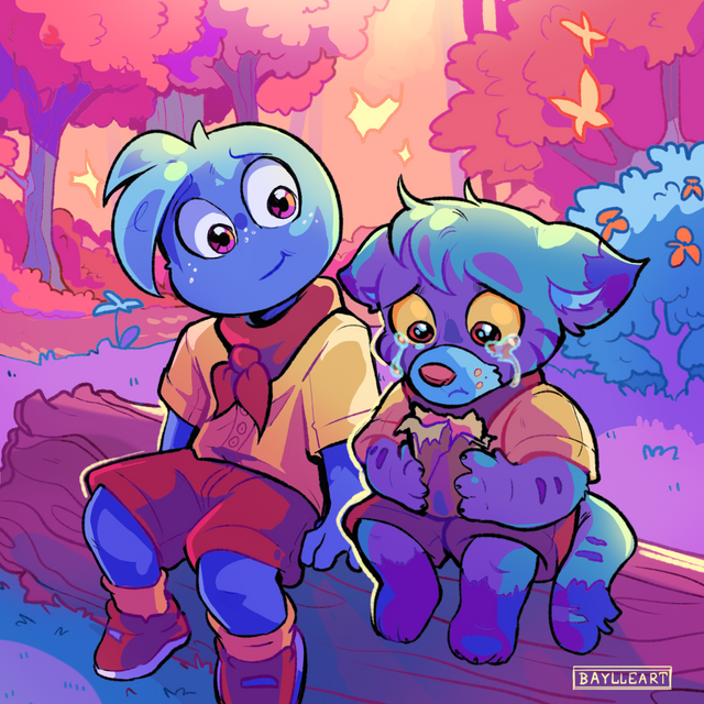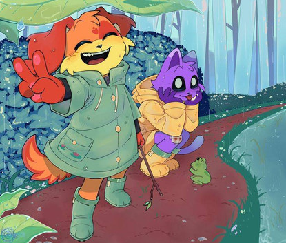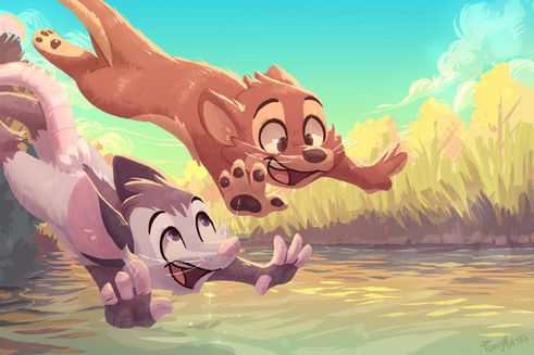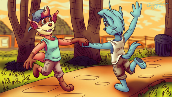 #digitalart #cartoon #originalcharacter #artfight #furry #background #childhood #cute #friends #furries #holdinghands #kids #mud #nature #park #skunk #squirrel #sunset #wholesome