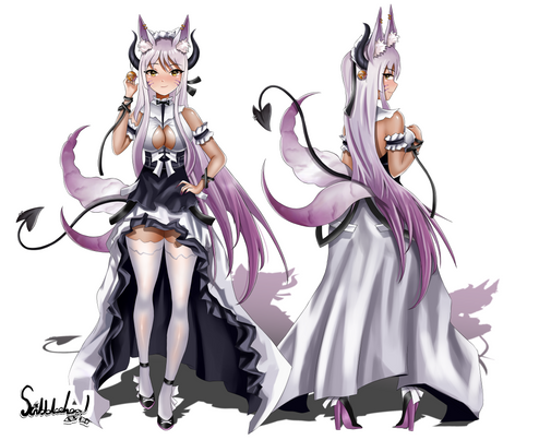 Fullbody colored + 3 headshot expressions for SkyverniusShe's a Kitsune-Demon Hybrid so I tried to give her features from both