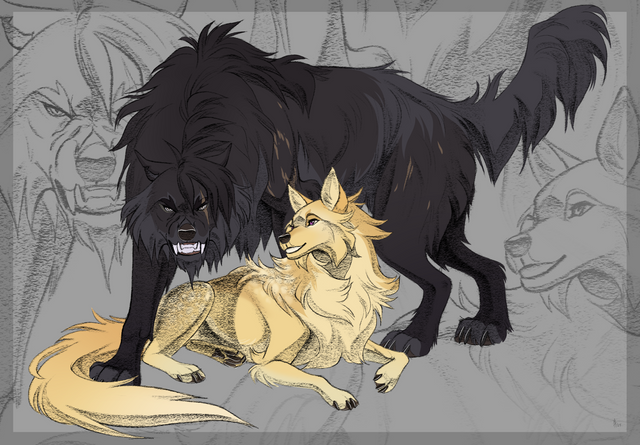 The giant black wolf landed in the middle of her back, jaws closing around her spine, eyes wide and unblinking. Ryll uttered a horrified cry as the jaws tightened with a sickening snap—