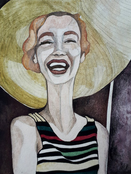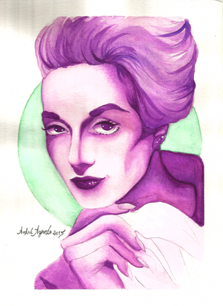 Watercolour of Queenie Goldstein, played by Alison Sudol.Pink isn't the easiest colour to work with, so please forgive any failures.