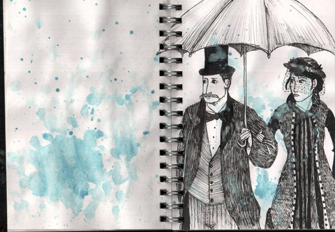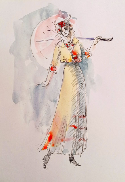 #vintage #traditionalart #sketch #pencildrawing #ink #watercolour #portrait #dress #victorian #guillermodeltoro #crimsonpeak