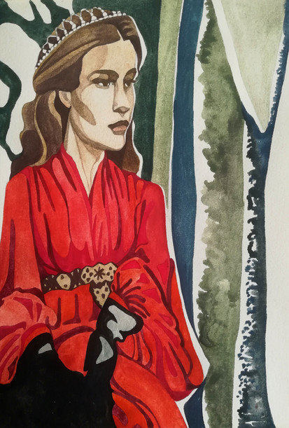 Another Merlin character, Princess Elena who appears in series 3.I've changed the dress slightly, I know that it's suppose to be a bit gawky, and I'll fitting, but I just couldn't bring myself to draw all those bows!