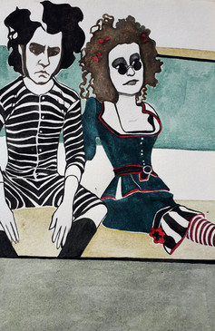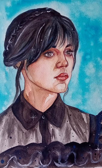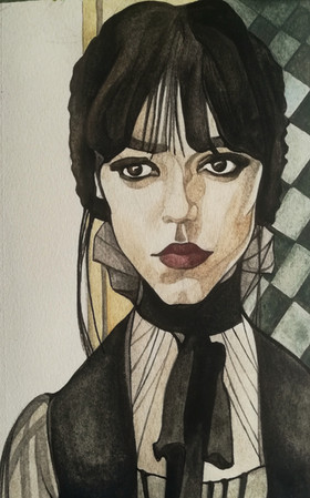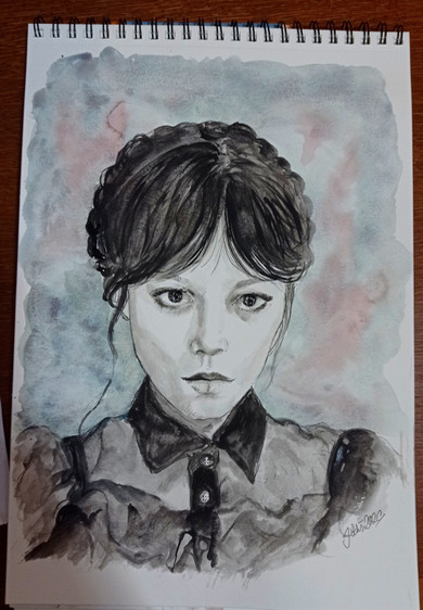 #portrait #traditionalart #fanart #gothic #pencildrawing #watercolour #portraitgirl #beetlejuice #lydia