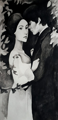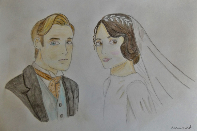 Watercolour of two of my favourite Downton characters, lady Sybil and Tom Branson, in series 3, played by Jessica Brown Findlay and Allen Leech.Related content