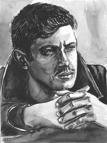 Watercolour based on a still from the Living and the Dead, with Nathan Appleby, played by Colin Morgan(myfavourite!).Related content