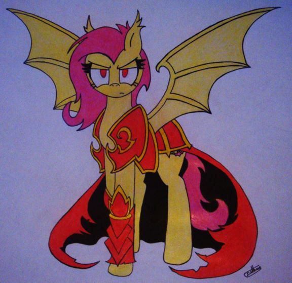 Makes me think of those bat wings are part of the armor, cause I ain't seeing any batpony ears there, so probably just part of the armor...