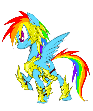 Rainbow dash as a night guard under the terrible Nightmare Moon.Day 75! I think I may have been one of the first in the fan art community to make this version, as I have yet to see other original pieces depicting this version of Rainbow Dash. If so, win for me!
