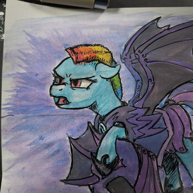 #fim #mlp #pen #alternatetimeline #batpony #rainbowdash #traditionalart #watercolor #s5finale