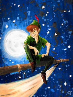 i really love the coloring, peter pan looks neat next to the moon. maybe you could put some moonlight along his silhouette. please draw me one of wendy!