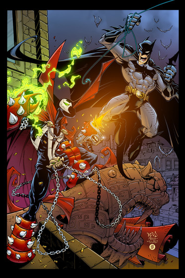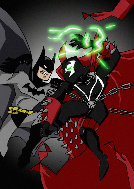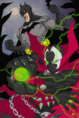 Here is a comish I finished. Batman/Spawn. booyheahassist colours by Courtland Brugger