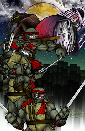 i like the layout and the poses, the style itself seems kinda cartooney for the characters though...just my 2 cents...very nice though...