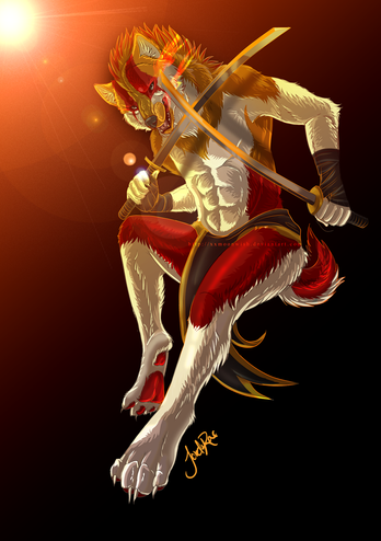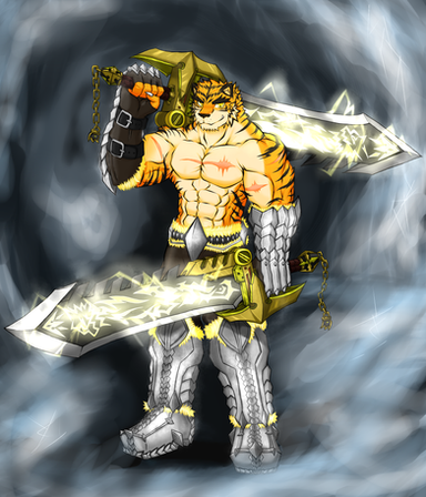 I like how the way you did the effect on his swords, it's so cool <3 ^^