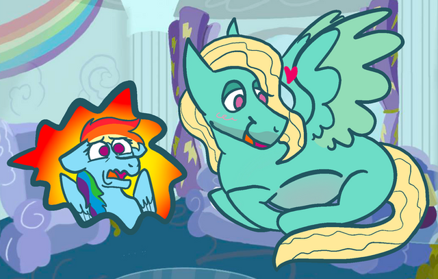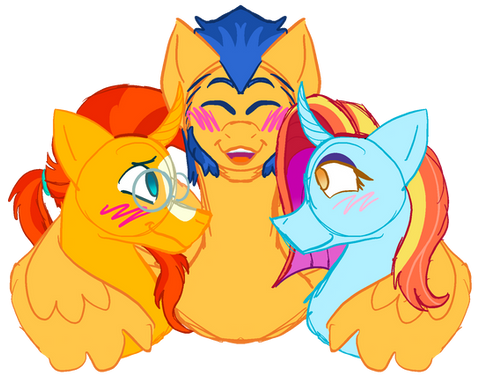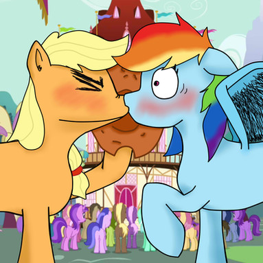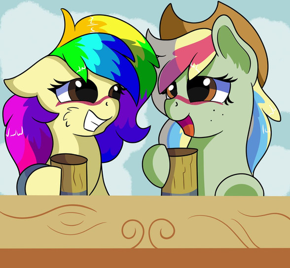 "Dashieee!" Zephyr Breeze cheered, clearly under the influence himself, leaning his hooves across the table to hold Rainbow Dash's. While she would usually pull them away, she didn't this time.