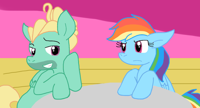 Soarin' took a seat at the nearest table he could find next to Dash, deciding that somepony had to be responsible here.