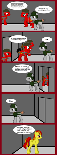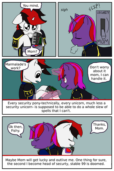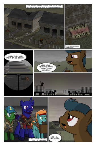 This comic is based on the fanfiction Fallout Equestria: Project Horizons by the one and only Somber . All characters and plotlines are based off of the aforementioned work. This comic may or may not remain faithful to the original work, and should be treated as a non cannon fan work. Thank you for reading!