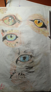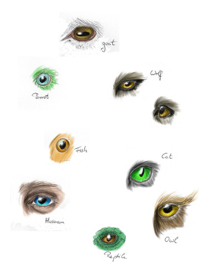 Just a human eye, a dog eye, an owl eye, and a snake eye.Each one took about 20 or 30 minutes each approx. Was lots of fun, I'll definitely do it again.