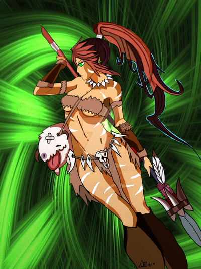 Nidalee from League of Legends done in Paint Tool Sai.Background done in Photoshop
