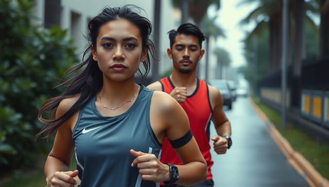In a series of dynamic snapshots, a young, athletic woman strides confidently towards the gym, her determination mirrored in the firm grip on her water bottle. Each photo captures the essence of a health-focused lifestyle, showcasing the woman's commitment to fitness as she makes her way to a place where she can hone her strength and endurance. The water bottle, a constant companion, symbolizes her dedication to hydration and well-being, completing the image of a person devoted to personal betterment.