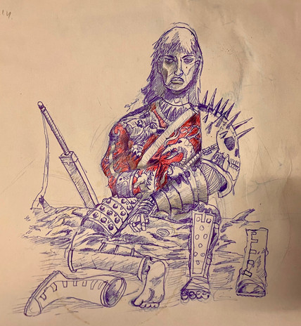 This one actually has quite a bit of backstory.So I have a dog with the gnarliest looking underbite ever. She is tiny and old now and her name is Polly. I had a dream that she was a huge, ape-like monster with weird, corkscrew-like horns kinda like the ones in this picture but I can't quite remember the exact place that they were. She was gigantic and I didn't see much of her but I just had a feeling that the giant I caught glimpses of was my tiny dog, you know what I mean? How in dreams you just know stuff?