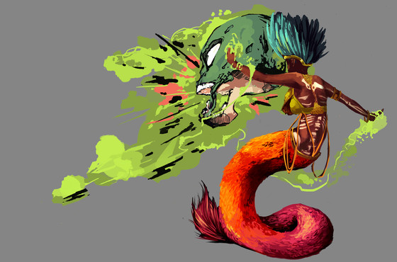 Sarah - This is gorgeous. Great job! I love the definition you've put on the elements, and the lighting is very nice. Your use of dark colors makes the piece very dramatic. I think it's overall a successful piece. The only thing I can see as maybe not working as well is that the water above Korra's head doesn't seem to be as fluid or clear as it could be. Maybe adding some highlighting or suggestions of refraction within the water could help. I do see how this style of drawing may cause that, but honestly, that's the only thing I can even find. This is great. e.deviantart.net/emoticons/s/s⦠" width="15" height="15" alt="