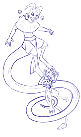 i think i was trying to draw some scuba divers? and everything just went awry and my hand wanted to go in a separate way. new year oc's, Pagi and Isu, (left and right) they're named after common fish you can see in the Philippines. sorry for the really big eyes i was just experimenting.