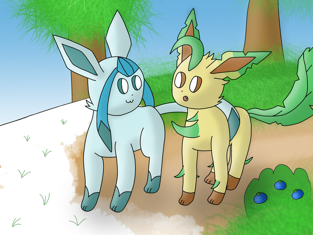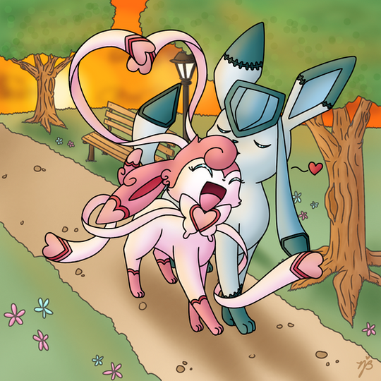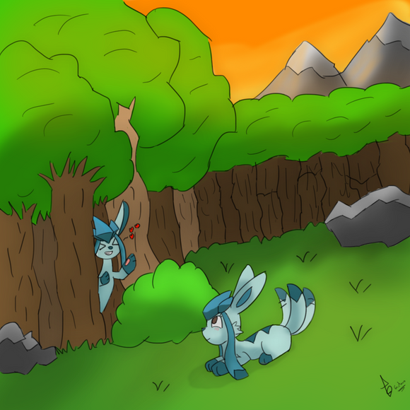 #blush #crush #cute #leafeon #love #pokemon #stroll #tsundere #walk #glaceon #outside #walking #eevolves