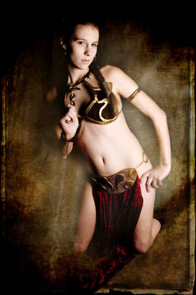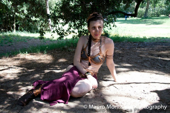 Love these photos. Unlike some cosplay images, wherein you might have, say, Supergirl posing in a parking lot somewhere, you and the scenery mesh perfectly. It really looks authentic. The colors are rich and natural--worlds away from a movie set--and your costume suits you perfectly, as if it were standard wear for a recently-purchased slave girl. You're a lovely model; youΒ injectΒ a little more sensuality to the scene than Lucas (or Disney, now) would prefer, but it works. You're a slave girl, after all.