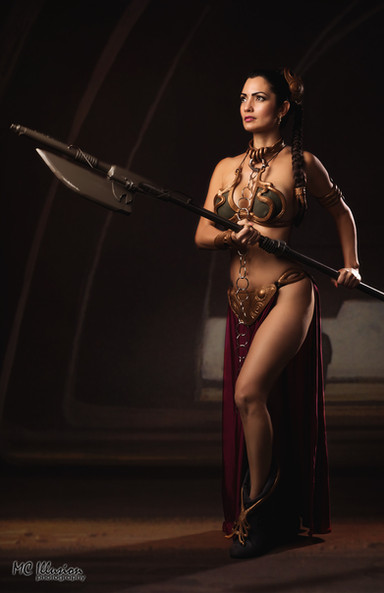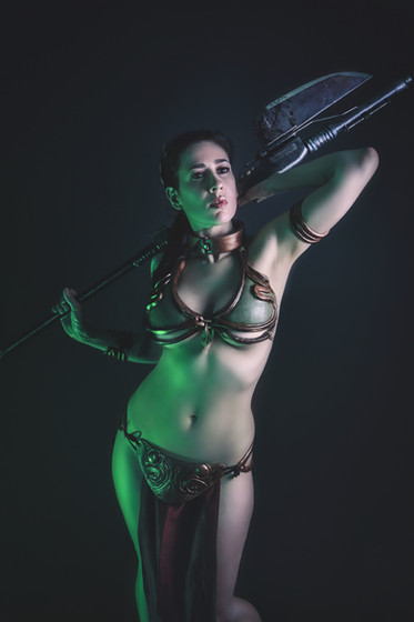 Having worn the "metal bikini" for 5 or so years now, I've pretty much gotten my fill of wearing it...but I've always wanted an opportunity to get studio quality shots of my Slave Leia before hanging it up for good. And finally after a year or so I was able to schedule something with my friend and photographer Britt Dietz. I'm very thrilled with the resultsAnd YES, I'm well aware I don't have the chain collar on. This was a conscious decision as previous shots with the collar and chain proved to be creating odd shadows on my face and body.