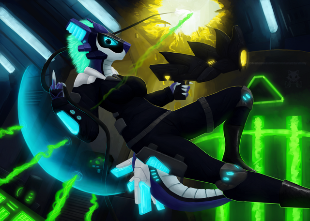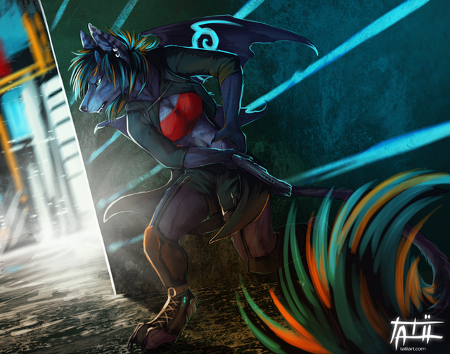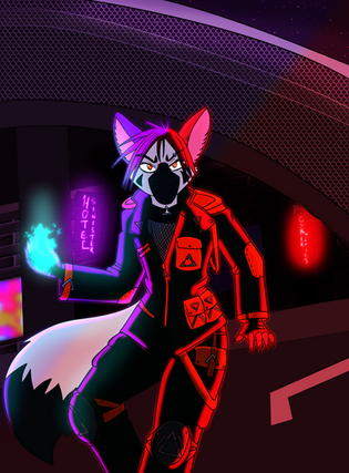 #anna #anthro #city #cyberpunk #furry #fursona #glow #kobold #neon #assassin #cybernetic #handgun #hitman #macabre #murder #pistol