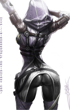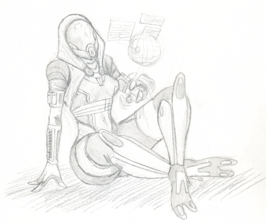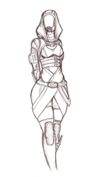Another drawing of Tali. Funny, I wanted to draw something with her legs but after a few quick sketches I grew to like this one the most and kept working on it. I may even color it for fun. If I do color this, I may not keep that floating face on the left.Related content