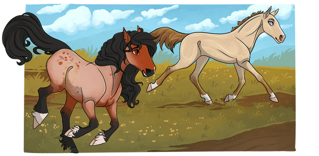 Art (c) Scutterland | I don't draw forward-facing cartoony pons in motion enough so I loosely reffed spirit screenshots, I know you technically shouldn't ref those I'm just a bad doodle