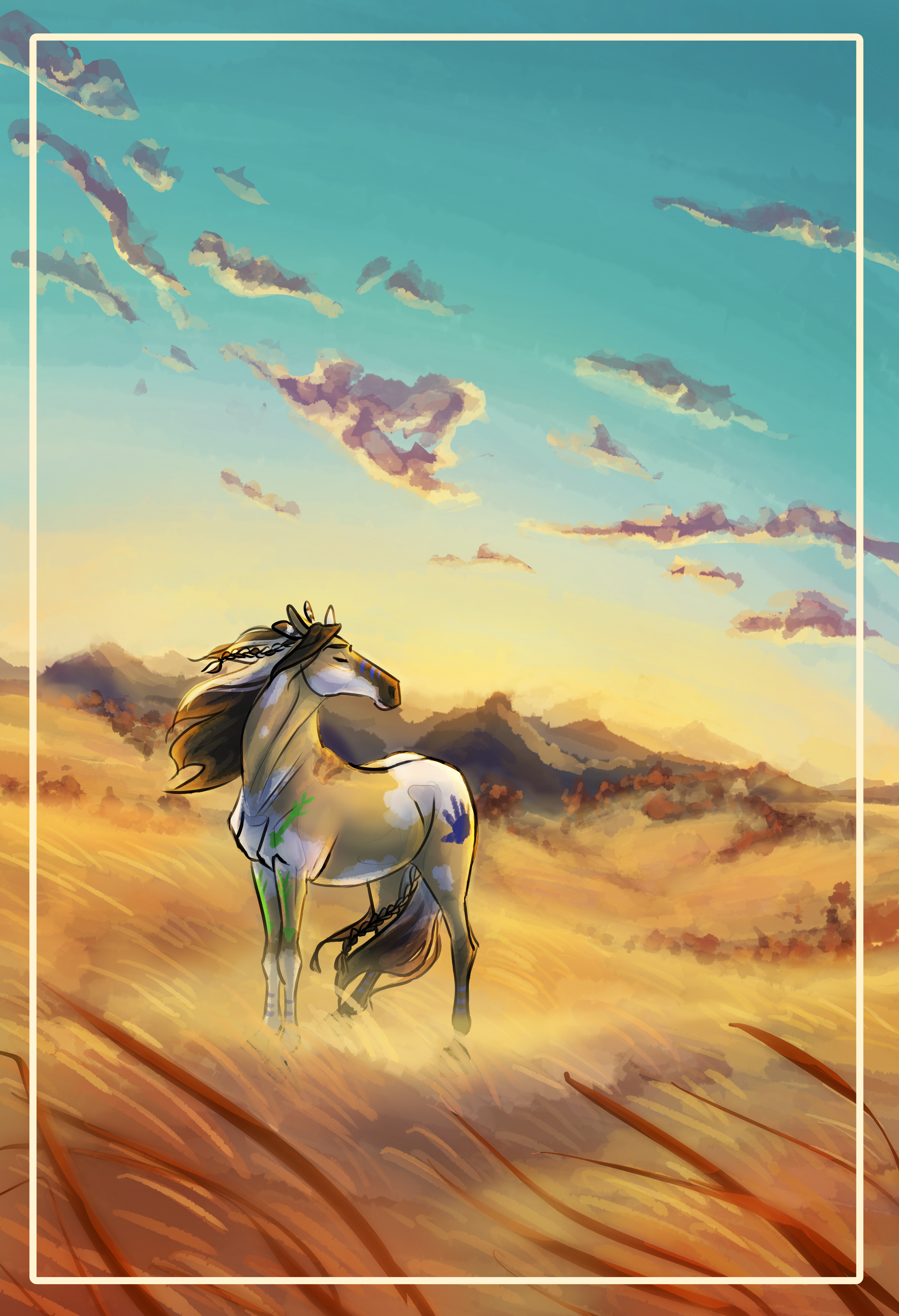 #digitalart #dreamworks #equestrian #equineart #painthorse #pinto #rain #rainhorse #spiritstallionofthecimarron #sunset #spirithorse #spiritstyle #nativehorse
