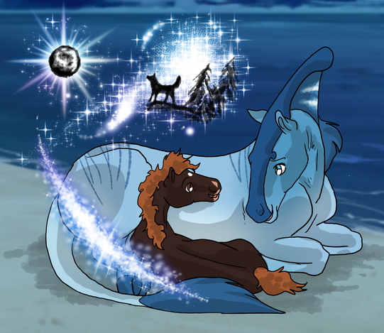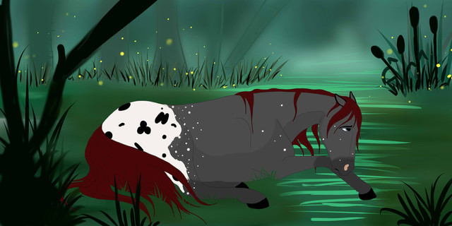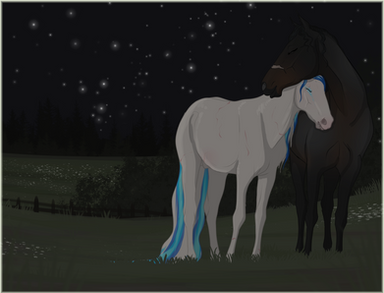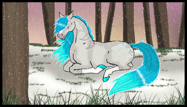 Ohmygosh this is so peaceful! I love the way you made her mane and tail so long and how content she looks <3 Theblus you used are really beautiful and go great with her color scheme : I really like the way you used blues for the shading and the firefly is a nice touch