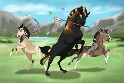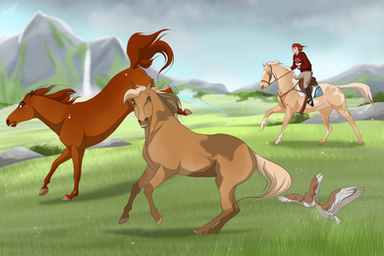 I love this art work. I really dislike the show since I’m an equestrian so when I see this girl from the city just hop on this wild horse and gallops off at a full speed gallop annoys me. I always loved the movie as a kid and was hoping the show would be like it but nope I was wrong.