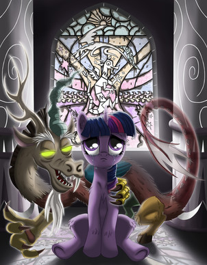 Someone pointed out a few posts back though, that by sealing Celestia and Luna in stone, that left Discord without the usual powers-that-be to torment, so it's possible he's got the Mane 6 locked up somewhere so to channel that tormenting on instead.